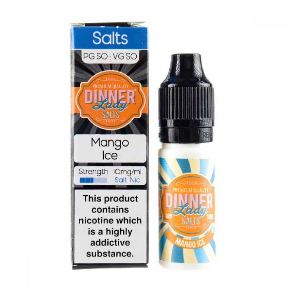 A cooling tropical taste, Mango Ice nic salt from Dinner Lady combines juicy plump yellow mango with an icy finish. Full on mango juicyness on the inhale, with an icy kick to finish.
