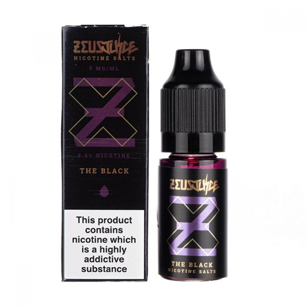 Zeus Juice The Black Nic Salt e-liquid delivers vibrant mixed berries, an explosion of sweet blackcurrants with a wisp of menthol. Experience sweet and tangy fruit notes with a refreshing menthol finish.